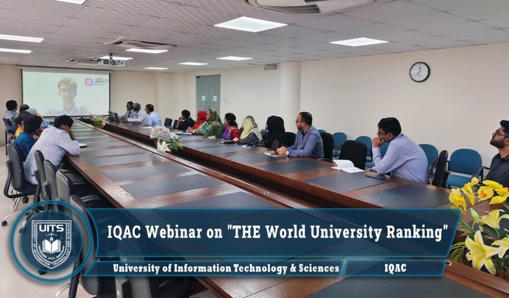 বিশ্ববিদ্যালয়ের শিক্ষার গুণগত মানোন্নয়ন ও আন্তর্জাতিক পরিমণ্ডলে নিজেদের অবস্থান সুসংহত করার লক্ষ্যে ইউনিভার্সিটি অব ইনফরমেশন টেকনোলজি অ্যান্ড সায়েন্সেস (ইউআইটিএস)-এ অনুষ্ঠিত হয়েছে এক গুরুত্বপূর্ণ আন্তর্জাতিক ওয়েবিনার। গত ২৭ এপ্রিল ২০২৬, বৃহস্পতিবার বিশ্ববিদ্যালয়ের কনফারেন্স রুমে ‘টাইমস হায়ার এডুকেশন (THE) ওয়ার্ল্ড ইউনিভার্সিটি র্যাঙ্কিং’ শীর্ষক এই ওয়েবিনারের আয়োজন করে প্রতিষ্ঠানের ইনস্টিটিউশনাল কোয়ালিটি অ্যাসিউরেন্স সেল (আইকিউএসি)।