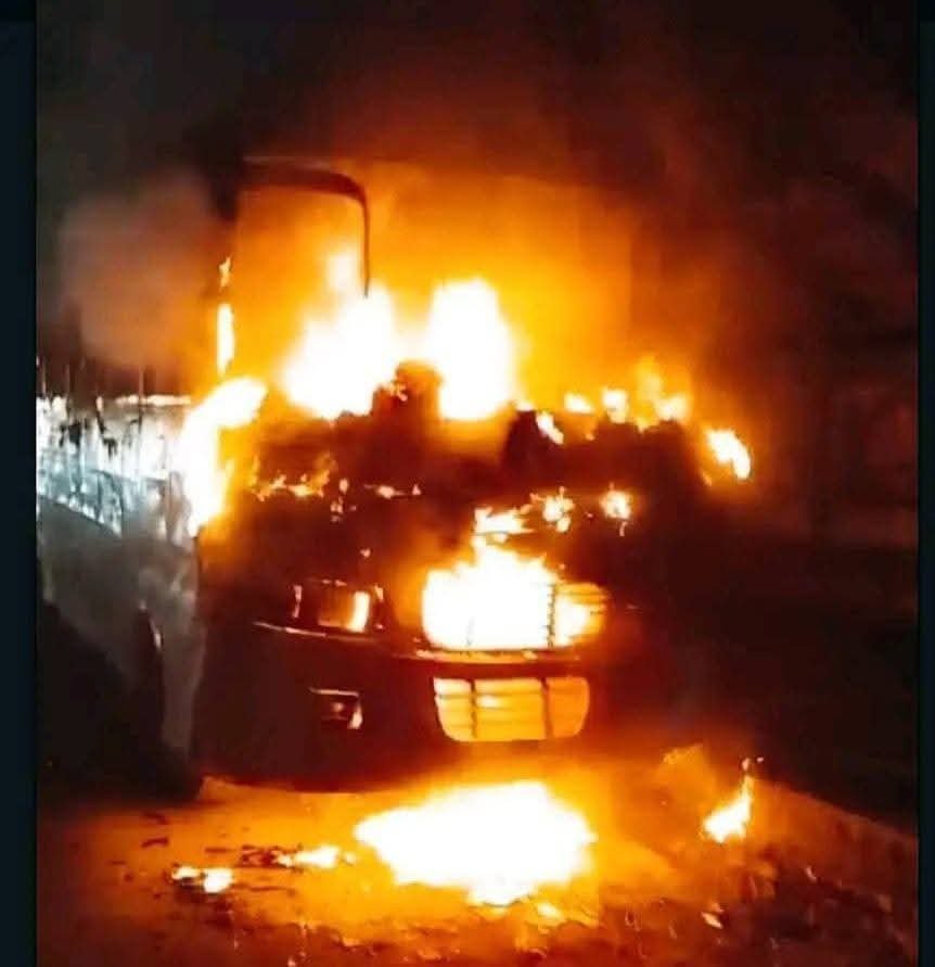আ.লীগ সন্ত্রাসী কর্তৃক মানিকগঞ্জে বাসে আগুন : ঘুমন্ত চালক ঝলশে নিহত