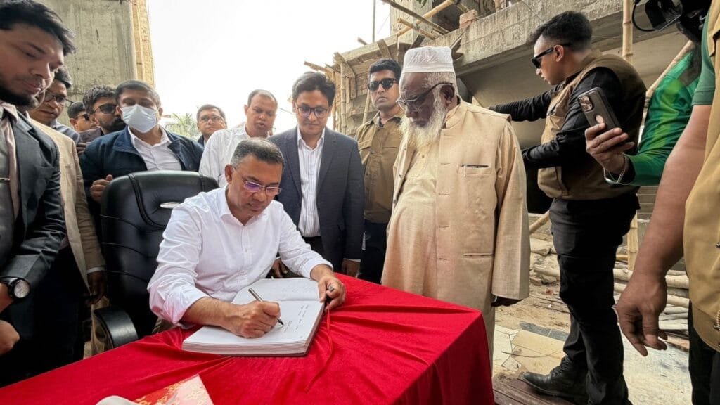 রাজশাহীতে পৌঁছেই হযরত শাহ মখদুম (রহ.)-এর দরগা জিয়ারত করেছেন বিএনপি চেয়ারম্যান তারেক রহমান। বৃহস্পতিবার (২৯ জানুয়ারি) দুপুর ১টা ২০ মিনিটে তাঁকে বহনকারী গাড়ি বহরটি দরগা শরীফে পৌঁছায়। সেখানে মাজার জিয়ারত ও দোয়া শেষে তিনি মাজারের পরিদর্শন বইয়ে স্বাক্ষর করেন। এরপর তিনি পুনরায় নির্ধারিত বাসে উঠে ঐতিহাসিক মাদ্রাসা মাঠের জনসভা মঞ্চের উদ্দেশ্যে রওনা হন।