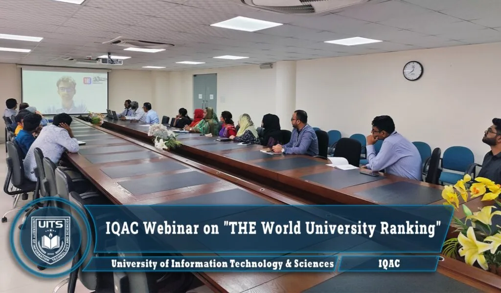 বিশ্ববিদ্যালয়ের শিক্ষার গুণগত মানোন্নয়ন ও আন্তর্জাতিক পরিমণ্ডলে নিজেদের অবস্থান সুসংহত করার লক্ষ্যে ইউনিভার্সিটি অব ইনফরমেশন টেকনোলজি অ্যান্ড সায়েন্সেস (ইউআইটিএস)-এ অনুষ্ঠিত হয়েছে এক গুরুত্বপূর্ণ আন্তর্জাতিক ওয়েবিনার। গত ২৭ এপ্রিল ২০২৬, বৃহস্পতিবার বিশ্ববিদ্যালয়ের কনফারেন্স রুমে ‘টাইমস হায়ার এডুকেশন (THE) ওয়ার্ল্ড ইউনিভার্সিটি র্যাঙ্কিং’ শীর্ষক এই ওয়েবিনারের আয়োজন করে প্রতিষ্ঠানের ইনস্টিটিউশনাল কোয়ালিটি অ্যাসিউরেন্স সেল (আইকিউএসি)।