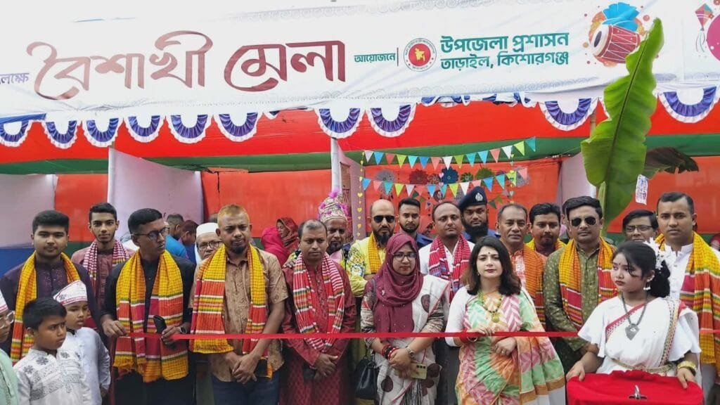 কিশোরগঞ্জের তাড়াইল উপজেলায় উৎসবমুখর ও আনন্দঘন পরিবেশে বাংলা নববর্ষ ১৪৩৩ উদযাপন করা হয়েছে। মঙ্গলবার (১৪ এপ্রিল) সকালে উপজেলা প্রশাসনের উদ্যোগে বর্ণাঢ্য এই আয়োজনের উদ্বোধন করেন উপজেলা নির্বাহী অফিসার তানজিলা আক্তার।