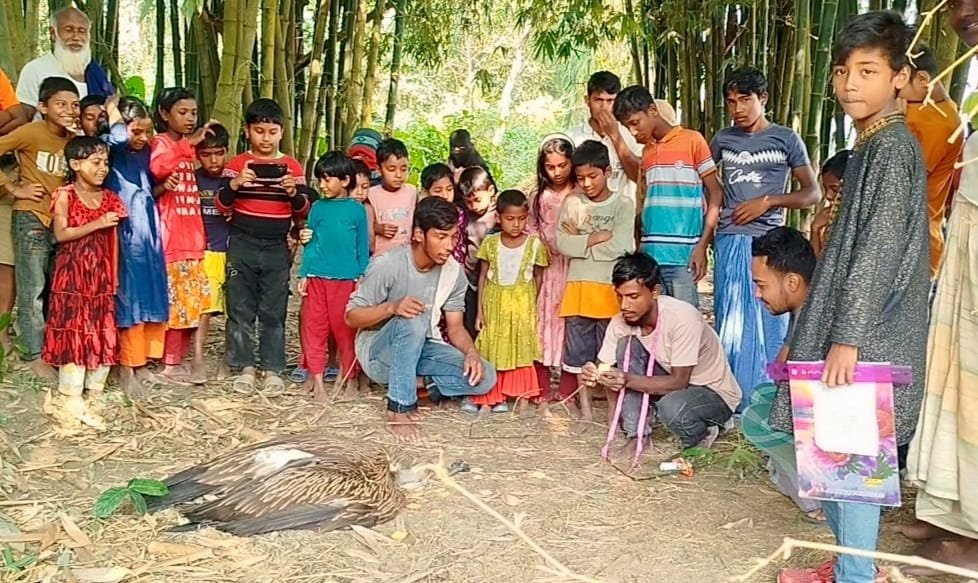 ফুলবাড়ীতে বিরল শকুন উদ্ধার, দেখতে মানুষের ভিড়