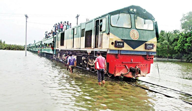 টানা বৃষ্টিপাত ও ভারতের উজানের পানির কারণে দেশের নয়টি জেলা ভয়াবহ বন্যার কবলে পড়েছে। এতে পানি উঠেছে মহাসড়ক ও রেললাইনে। ফলে ঢাকা-সিলেট ও ঢাকা-চট্টগ্রাম পথে ট্রেন চলাচল বন্ধ করে দিয়েছে বাংলাদেশ রেলওয়ে।