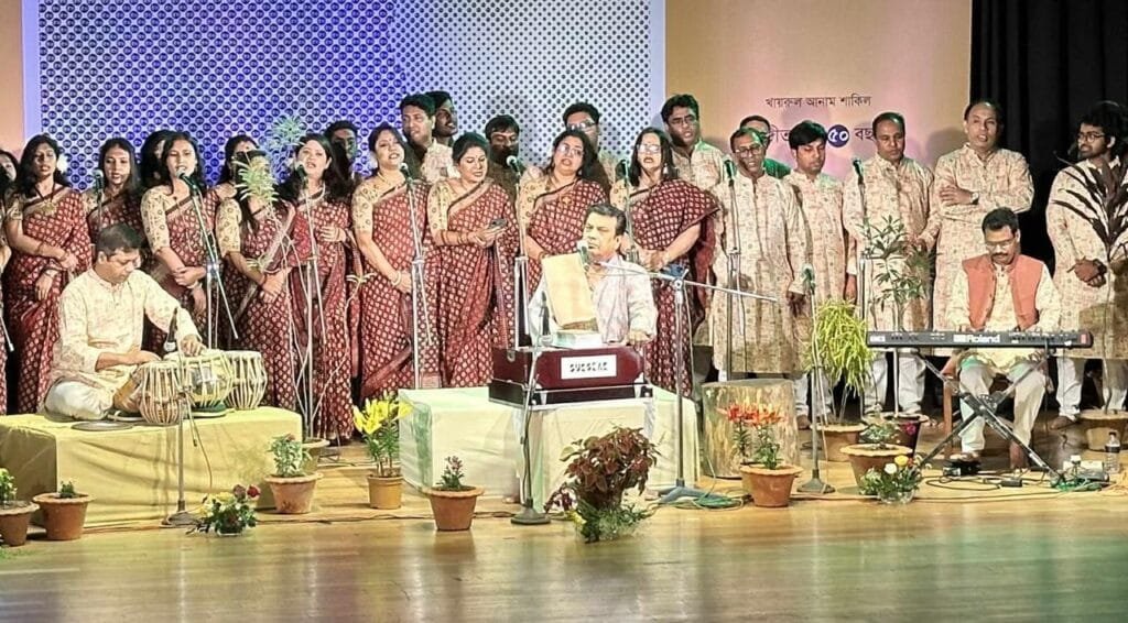 ১৩ ডিসেম্বর শনিবার ২০২৫, ছায়ানট মিলনায়তন ছিলো আনন্দ-মুখর। হল ভর্তি দর্শকের উচ্ছ্বাসিত অপেক্ষা, এ যেনো বহু যুগের প্রতীক্ষিত উচ্ছ্বাস। আর কেনোই বা হবে না; দেশ বরেণ্য তথা উপমহাদেশের প্রখ্যাত সংগীত ব্যক্তিত্ব সর্বজন শ্রদ্ধেয় খায়রুল আনাম শাকিলের সঙ্গীত জীবনের ৫০ বছর পূর্তি উপলক্ষে অরুণরঞ্জনী সাথে খায়রুল আনাম শাকিলের ছাত্র-ছাত্রীরা এক আনন্দ অনুষ্ঠানের আয়োজন করে। এ আয়োজন থেকে বাদ পড়েনি তাঁর সহকর্মীবৃন্দও।
