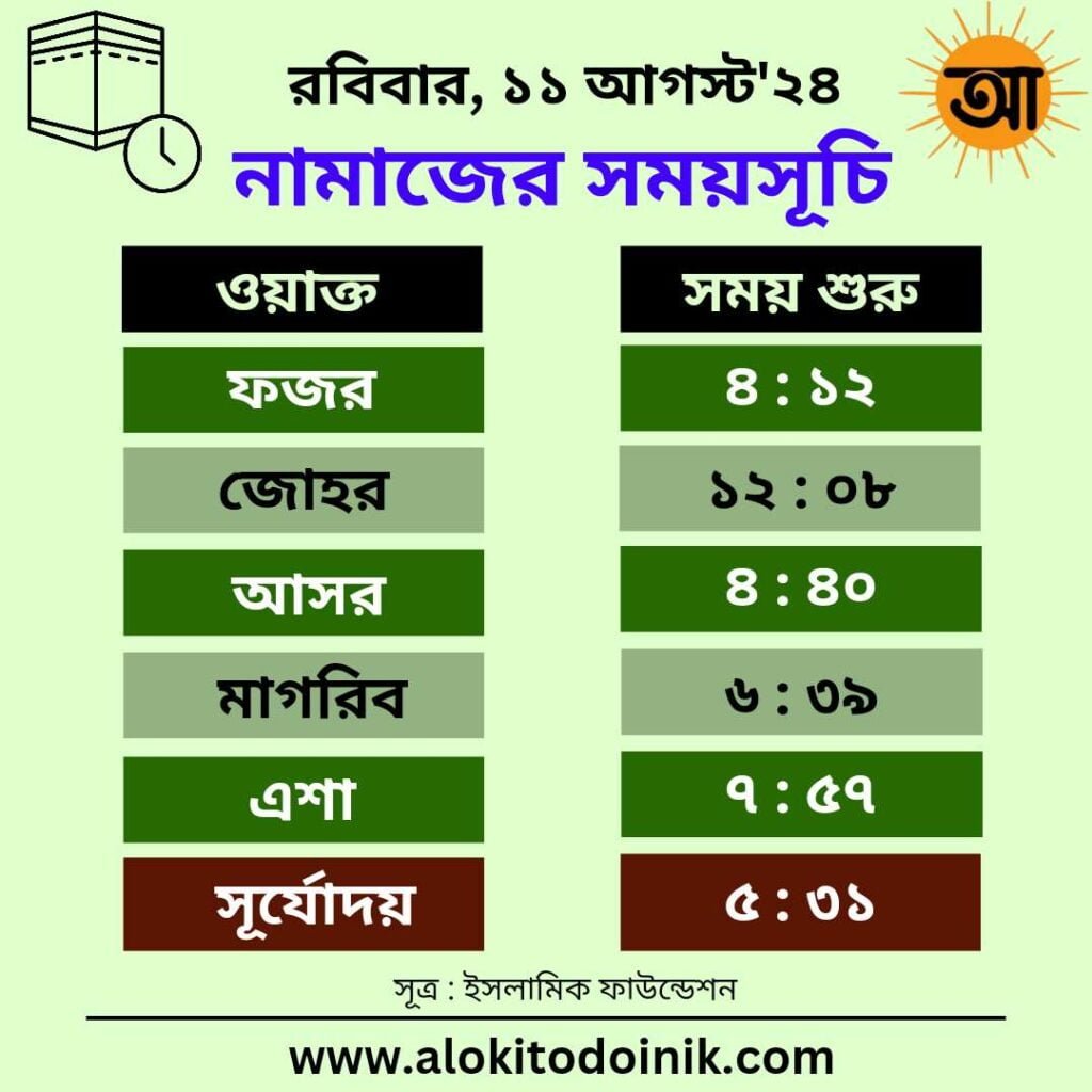 রবিবার, ১১ আগস্ট : নামাজের সময়সূচি