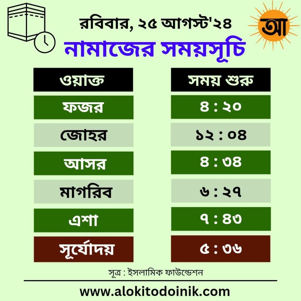 রবিবার, ২৫ আগস্ট : নামাজের সময়সূচি
