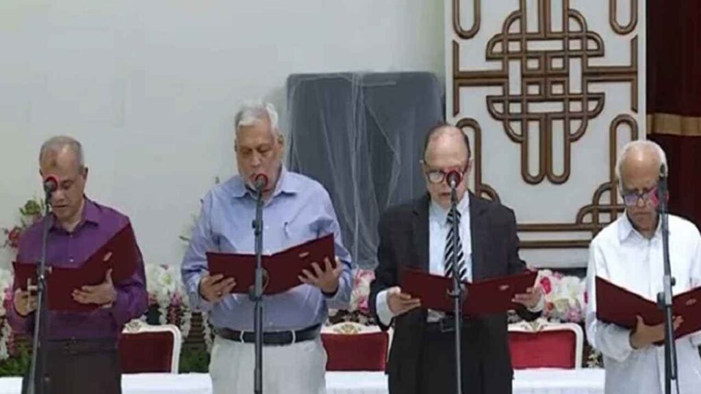 সাবেক মন্ত্রিপরিষদ সচিব আলী ইমাম মজুমদার, অর্থনীতিবিদ ওয়াহিদউদ্দিন মাহমুদ, সাবেক সচিব মুহাম্মদ ফাওজুল কবির খান এবং লেফটেন্যান্ট জেনারেল (অব.) জাহাঙ্গীর আলম চৌধুরী শপথ নেন আজ।