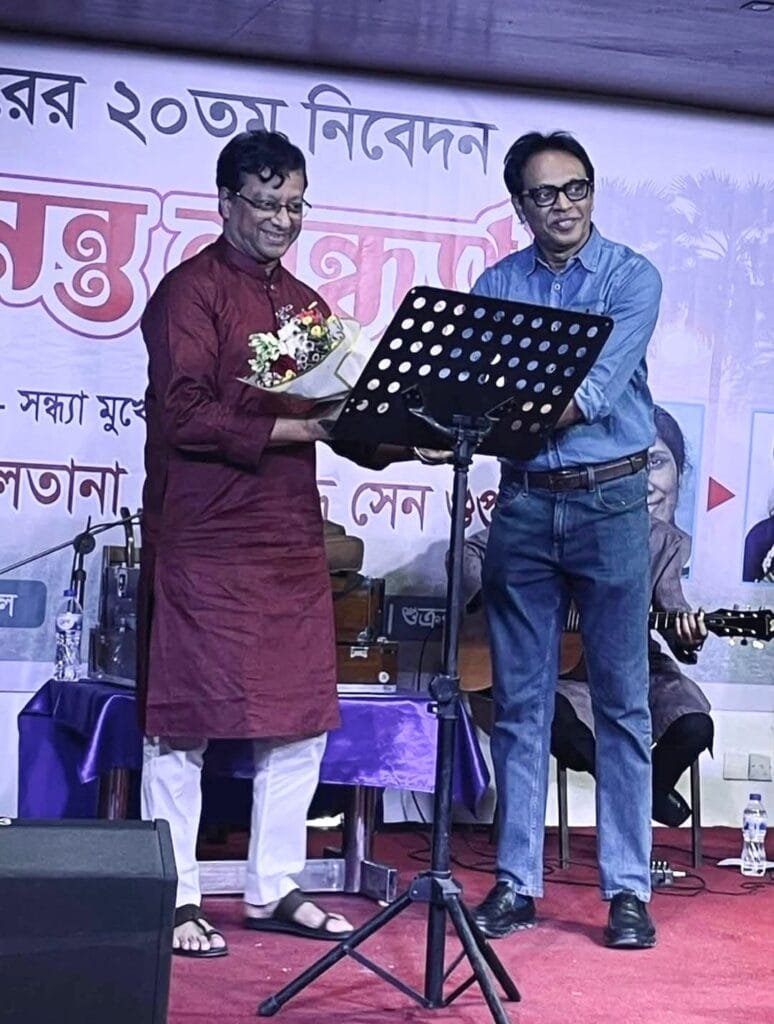 প্রথমেই শিল্পী অনিরুদ্ধ সেনগুপ্তকে ফুলেল শুভেচ্ছা জানান সাইফুদ্দিন আহমেদ এবং শিল্পী পারভীন সুলতানাকে ফুলের তোড়া উপহার দেন মানিক মোহাম্মদ রাজ্জাক।