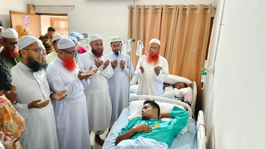 আনসার বাহিনীর কতিপয় দুর্বৃত্তদের হামলায় আহত বৈষম্যবিরোধী ছাত্র আন্দোলনের অন্যতম প্রধান সমন্বয়ক হাসনাত আব্দুল্লাহকে দেখতে গিয়েছিলেন ইসলামী আন্দোলন বাংলাদেশের নেতৃবৃন্দ।