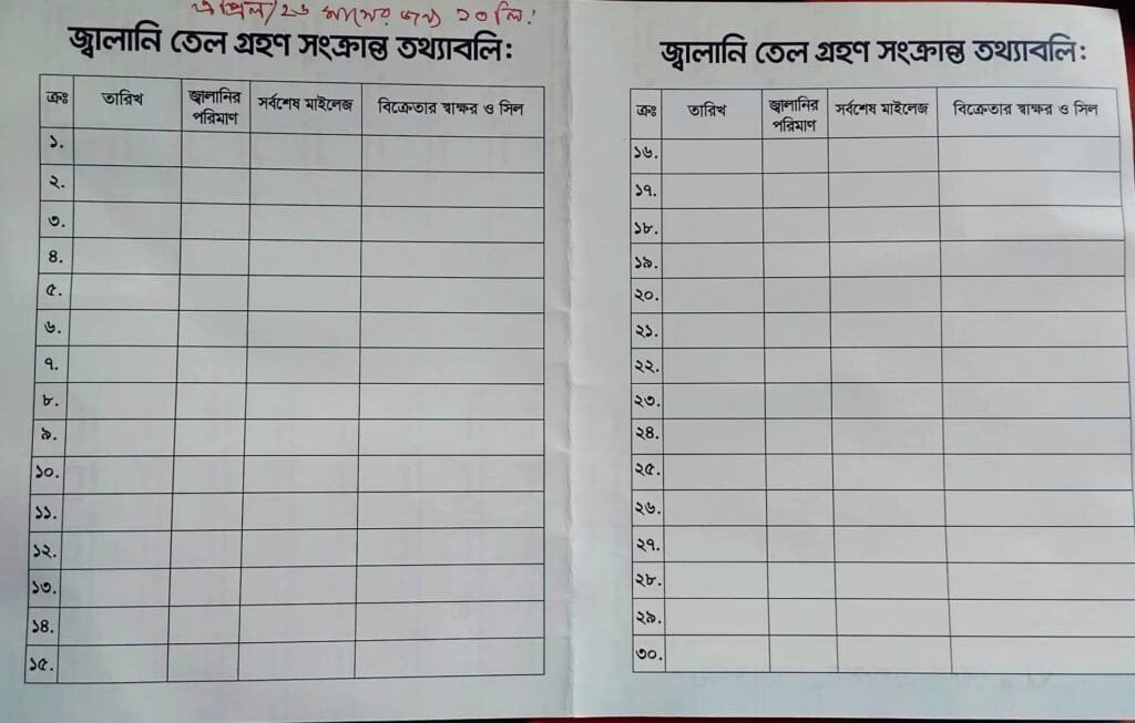 জেলা প্রশাসনের লোগো সম্বলিত এই ফুয়েল কার্ডে রয়েছে- বাইকারের নাম, ছবি, যানবাহনের ধরন (সিসি), রেজিস্ট্রেশন নম্বর এবং ড্রাইভিং লাইসেন্স নম্বরসহ বিস্তারিত তথ্য। কার্ডের ভেতরে জ্বালানি তেল গ্রহণের তারিখ, পরিমাণ এবং মাইলেজ লিপিবদ্ধ করার জন্য আলাদা ছক রাখা হয়েছে, যা প্রতিটি ট্রানজেকশনে ফিলিং স্টেশন কর্তৃপক্ষকে পূরণ করতে হবে।